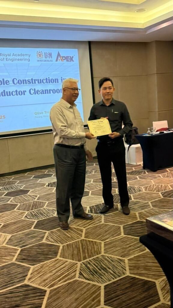 Mr. Gan Chun Hau (Terence), our Senior Project Manager, delivered an insightful session on “Sustainable Project Management in Semiconductor Cleanrooms”, sharing key strategies to minimize environmental impact while maintaining operational excellence.
